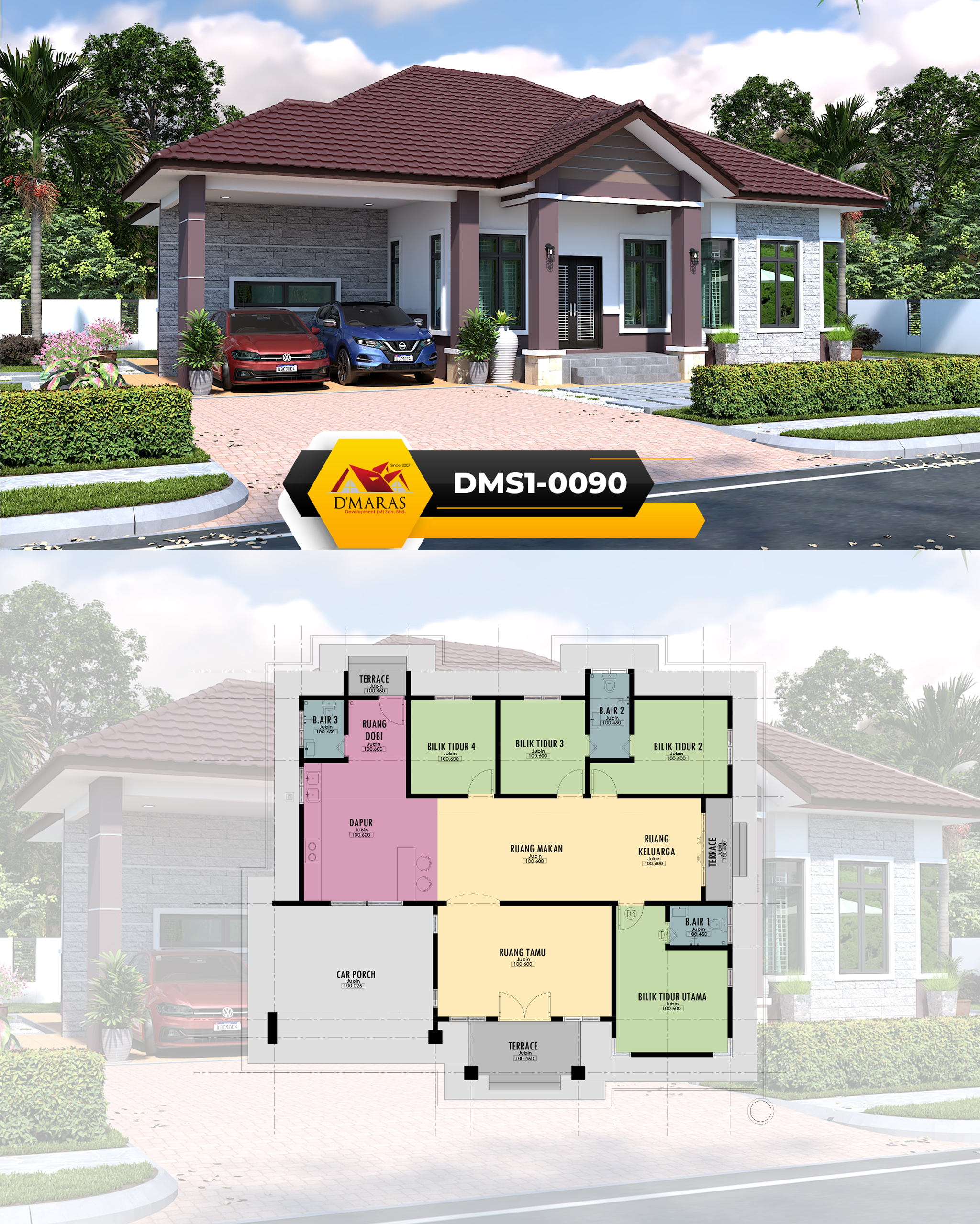 Saiz pelan ini berdasarkan pelan yang sedia ada. Pihak kami tidak menetapkan sebarang jaminan bahawa pelan ini sesuai dengan bentuk atau keluasan tanah di tapak tanah lain. Kami juga tidak bertanggungjawab sekiranya pelan ini tidak mendapat kelulusan Pihak Berkuasa Tempatan (PBT) / Majlis Perbandaran di kawasan masing-masing.