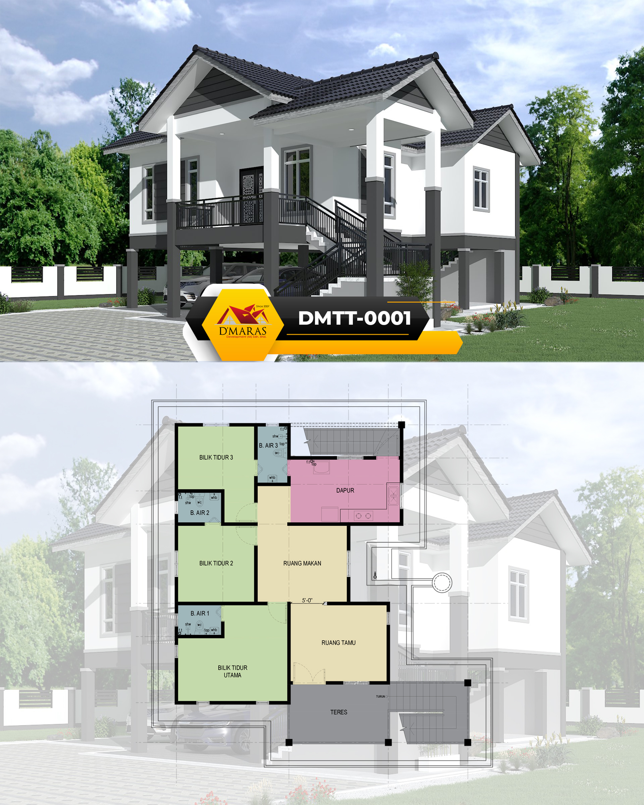 Saiz pelan ini berdasarkan pelan yang sedia ada. Pihak kami tidak menetapkan sebarang jaminan bahawa pelan ini sesuai dengan bentuk atau keluasan tanah di tapak tanah lain. Kami juga tidak bertanggungjawab sekiranya pelan ini tidak mendapat kelulusan Pihak Berkuasa Tempatan (PBT) / Majlis Perbandaran di kawasan masing-masing.